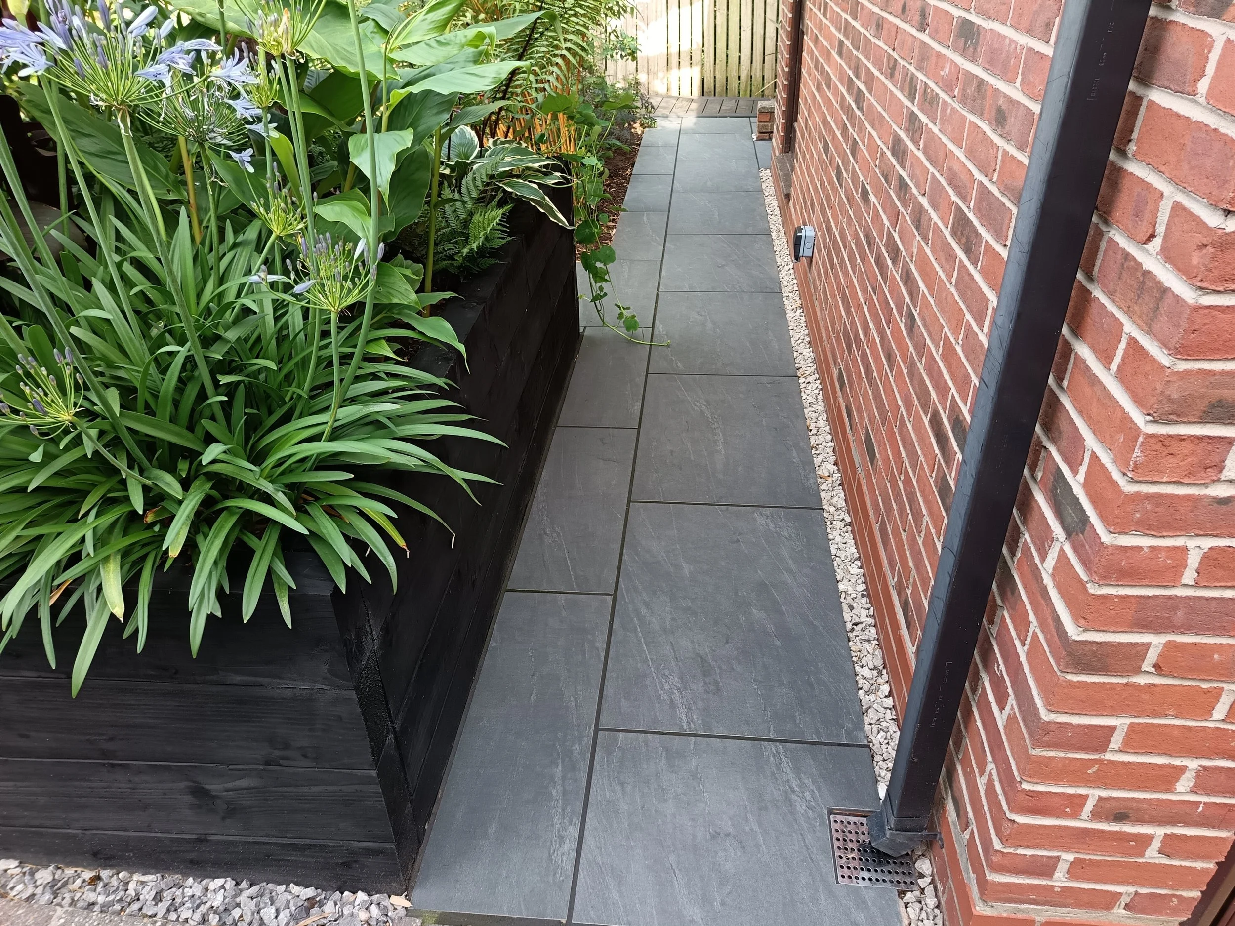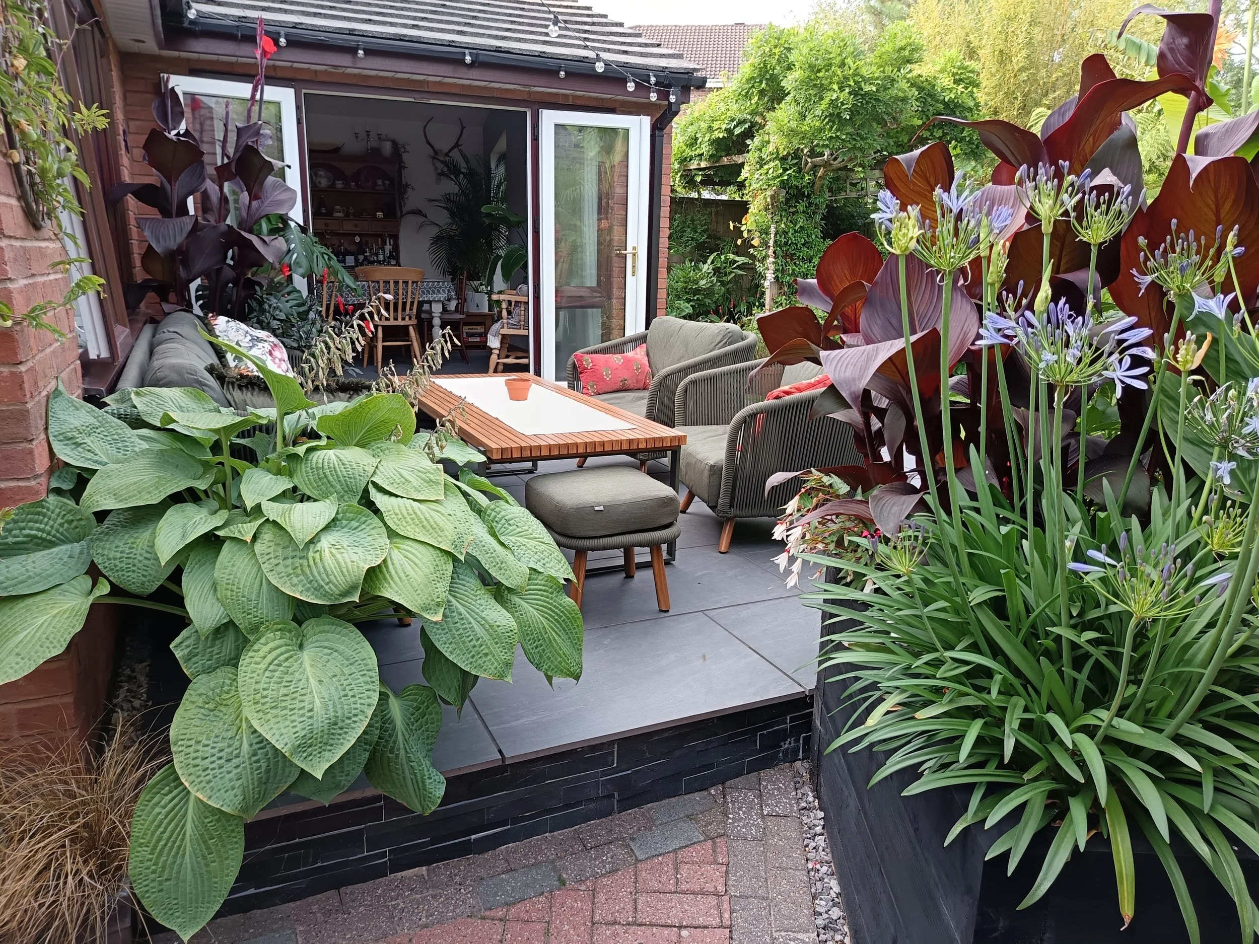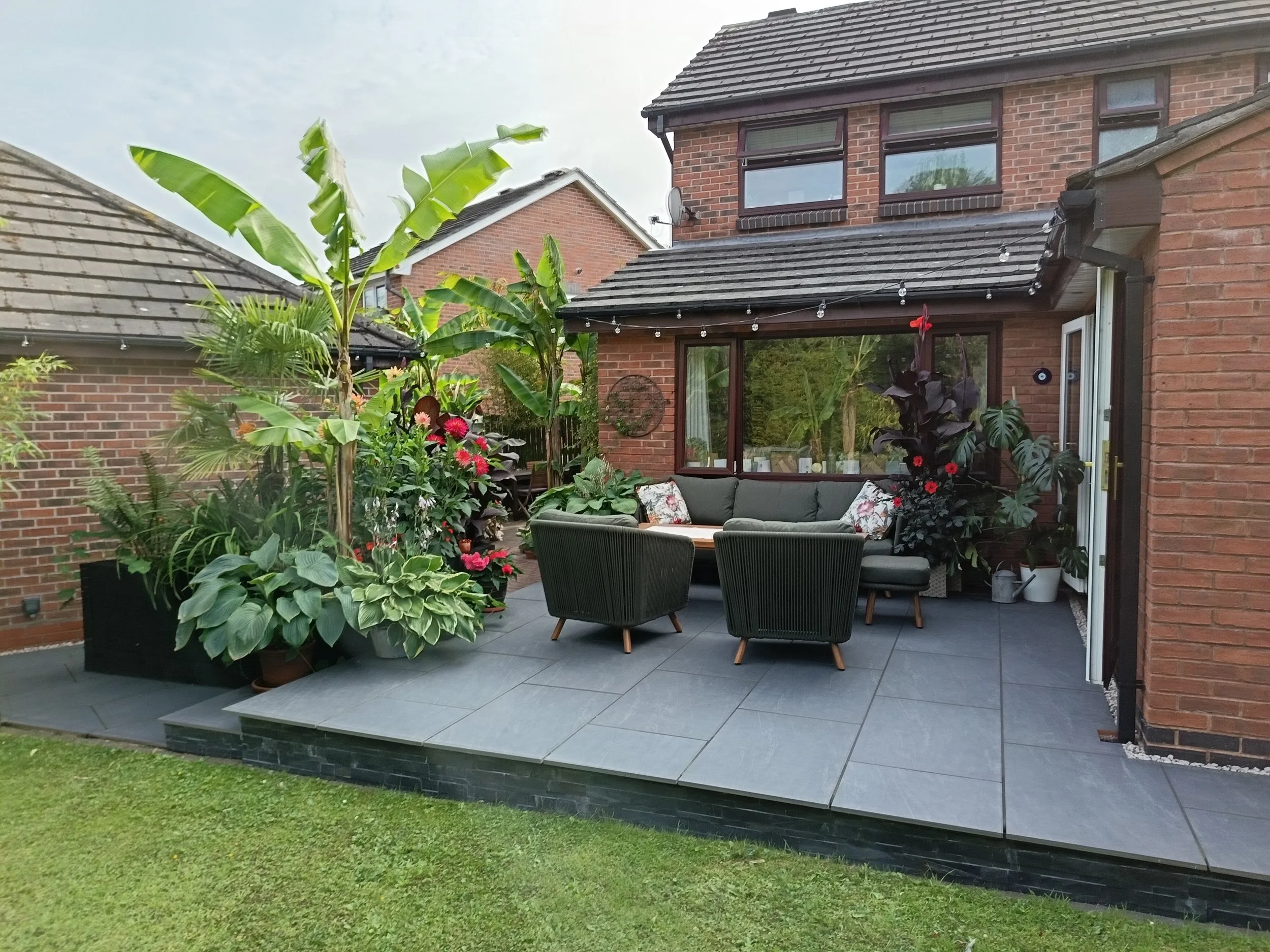 The original patio was slippery and broken, offering little inspiration for social gatherings or quiet evenings outdoors. Our clients envisioned something more: a place to host friends and family in style, to escape the everyday, and to let their love of rare and exotic planting take centre stage.